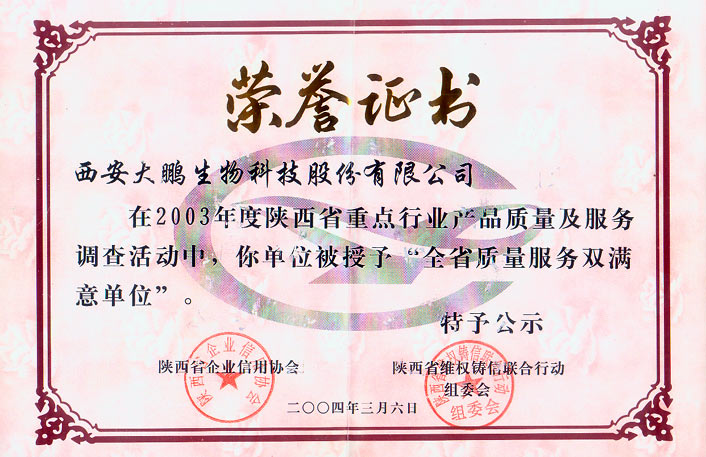 質量服務榮譽證書
